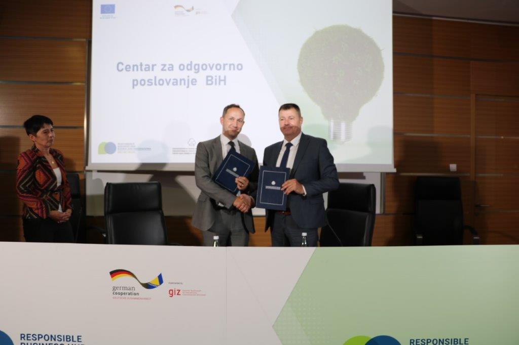 Centar za odgovorno poslovanje BiH dio je šire inicijative za razvoj privatnog sektora u BiH, koji sufinansiraju Evropska unija i vlada SR Njemačke, a implementira GIZ.